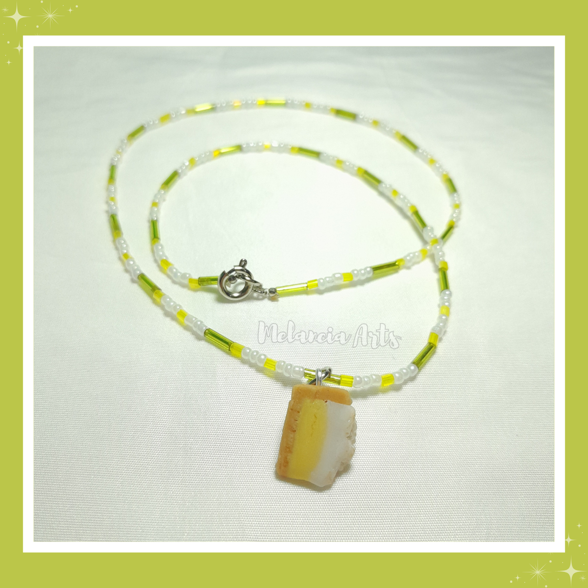 Dije de porcelana fría, protegido con top coat mate y brillante. Largo: 48 cm.